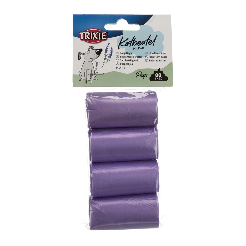 Avføringsposer med lavendelduft 4 ruller x 20 stk, lilla, M - Friske og praktiske poser for hundelufting