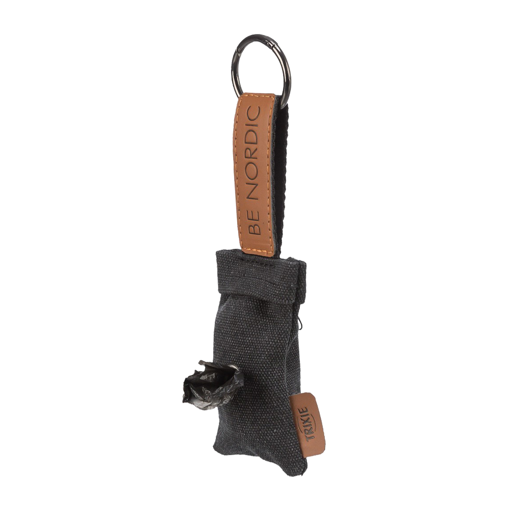 En praktisk BE NORDIC godbitpose med integrert holder til bæsjepose, laget av slitesterk polyester-lerretsimitasjon. Posen lukkes jevnt med snøring og er utstyrt med både klips og løkke for enkel festing til beltet. Leveres med en rull med 20 bæsjeposer.