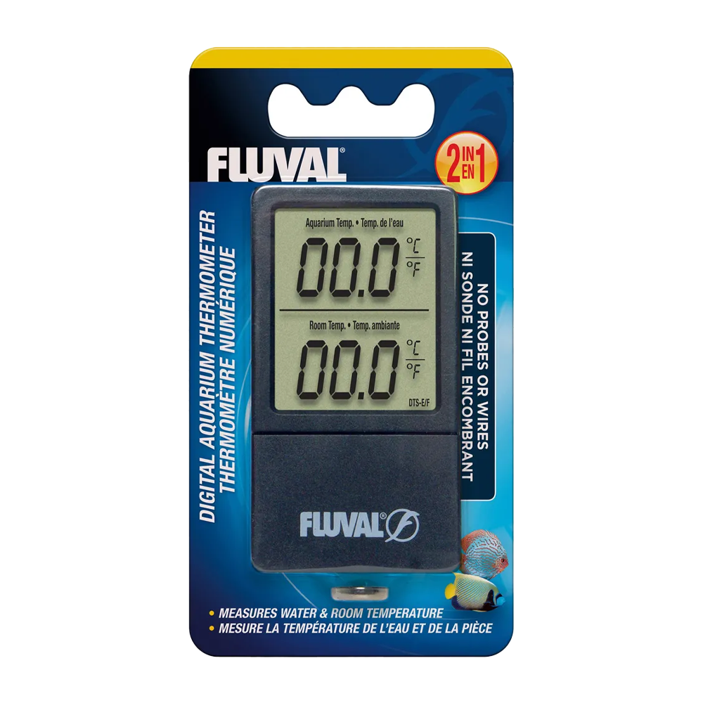 Fluvals 2-i-1 trådløse digitale termometer gjør det enkelt å overvåke både vann- og romtemperatur samtidig – uten ledninger eller sonder. Det store, tydelige LCD-displayet viser temperaturen med høy nøyaktighet og lar deg enkelt veksle mellom Celsius og Fahrenheit. Enheten festes enkelt på utsiden av akvarieglasset og er egnet for både ferskvann og saltvann.