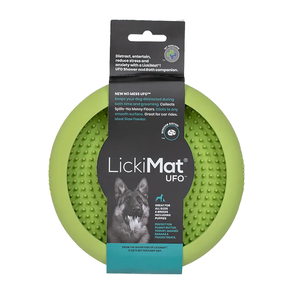 LickiMat UFO Hundskål Grön – Innovativ slickmatta med sugkoppar för bad, trimning och matstunder