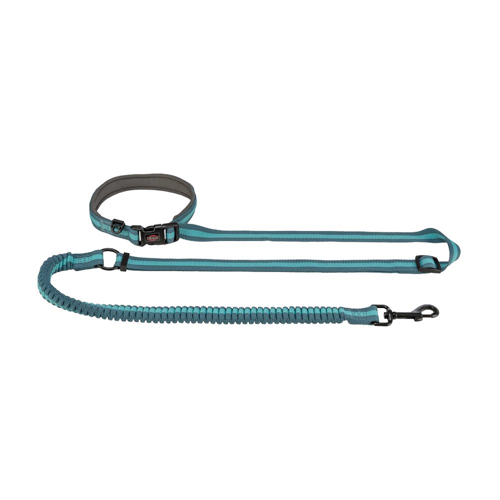En allsidig joggebånd som kan bæres rundt kroppen eller brukes som et vanlig håndbånd. Ekspansjonslinen demper rykk ved plutselige drag og gir en jevnere opplevelse for både hund og eier. Båndet er fullt justerbart og utstyrt med et polstret håndtak med krok og en praktisk løkke for å feste en ID-brikke eller blinklys.