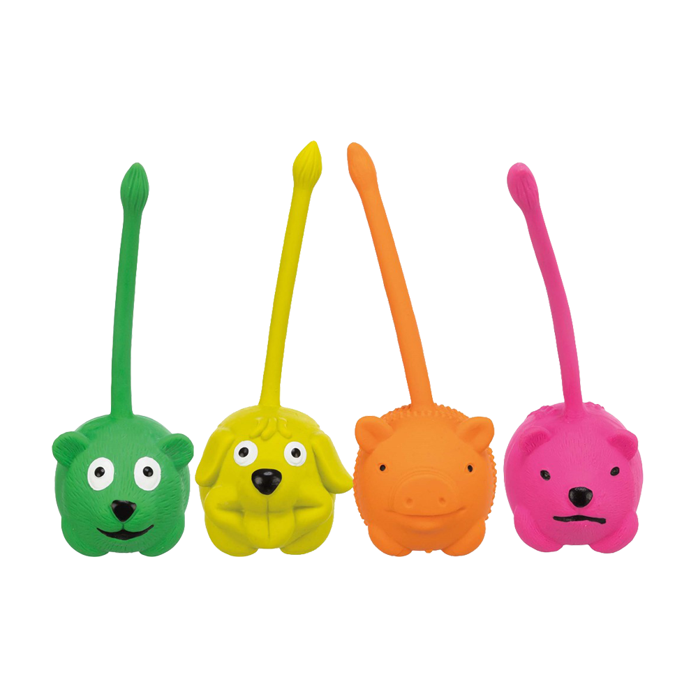 Latexdjur med svans ø 6 cm är en färgglad och lekfull hundleksak som kombinerar mjukt material med roligt ljud för extra underhållning. Den långa svansen gör leksaken lätt att greppa och skapar liv i leken.
