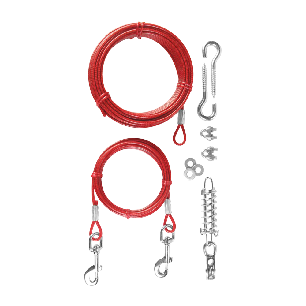 Plastbelagt løpebånd med dempende fjær som gir hunden trygg bevegelsesfrihet og reduserer rykk ved stopp. Den frie løpelengden er 3 meter og båndet er enkelt å feste til for eksempel et tre eller en bygning.