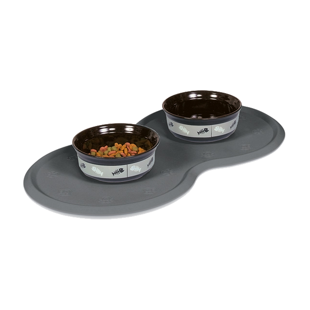 Sklisikker matte i naturgummi med hevet kant som holder mat- og vannskåler på plass og forhindrer søl. Passer til skåler opptil ø 21 cm.