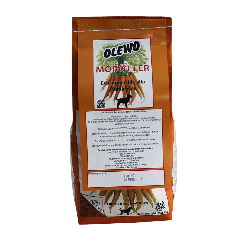 Olewo Morötter Hund är ett enkelt och naturligt sätt att komplettera hundens kost för bättre mage, päls och allmänt välbefinnande.